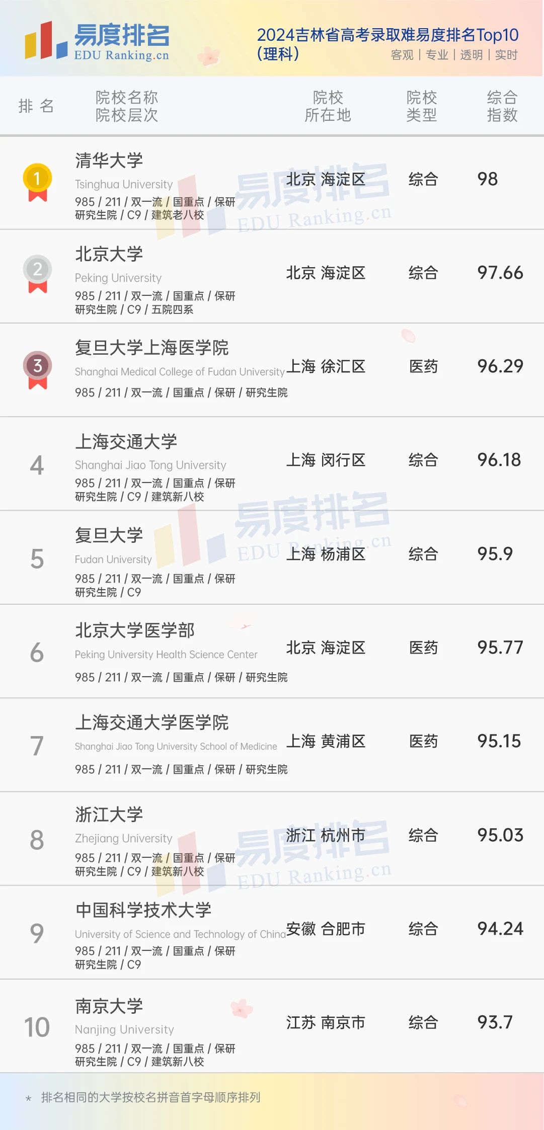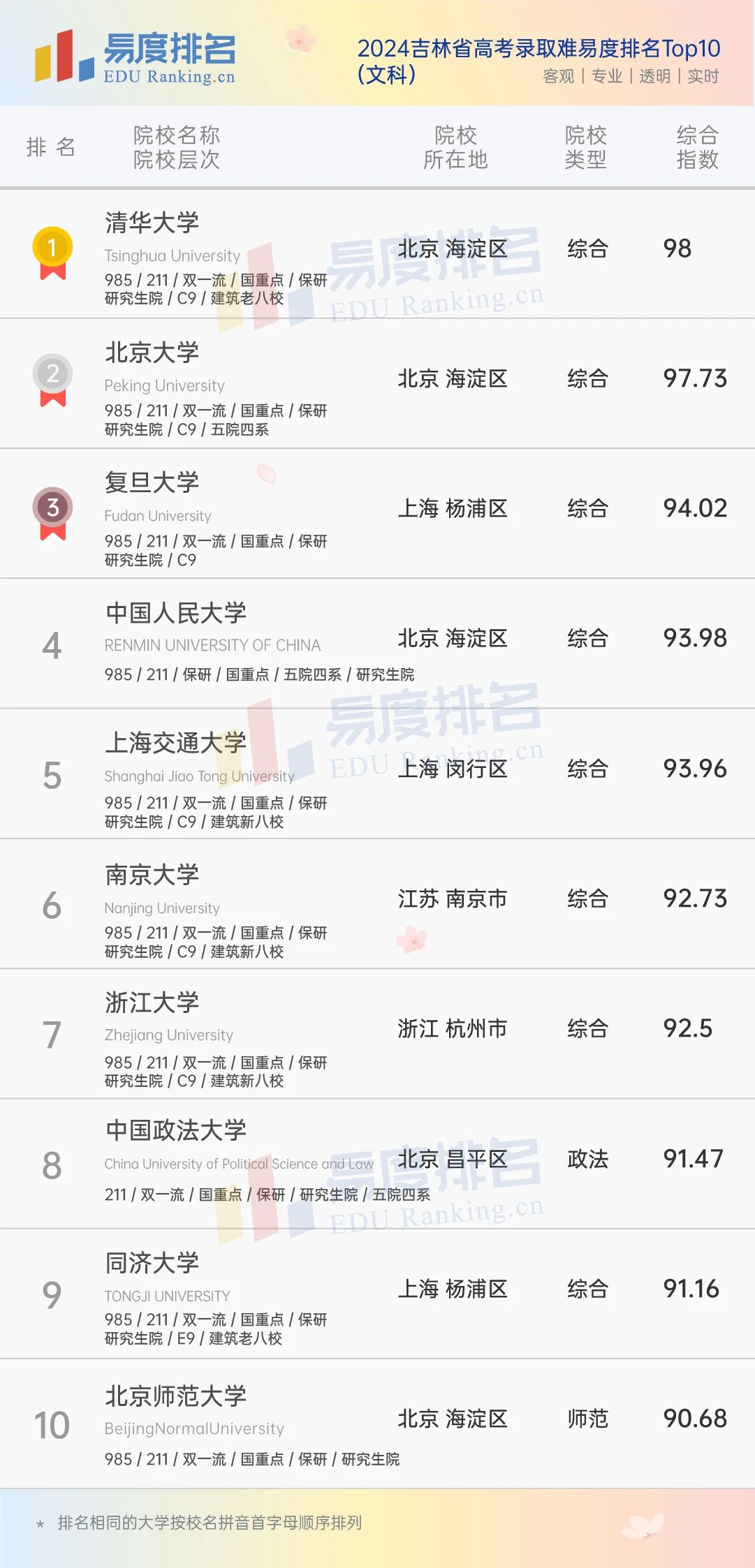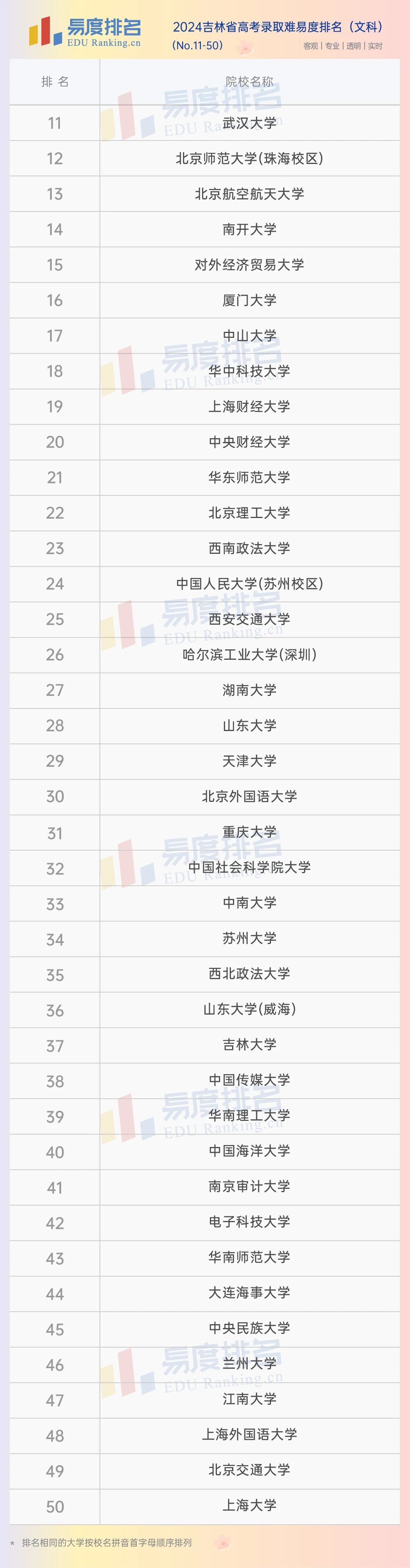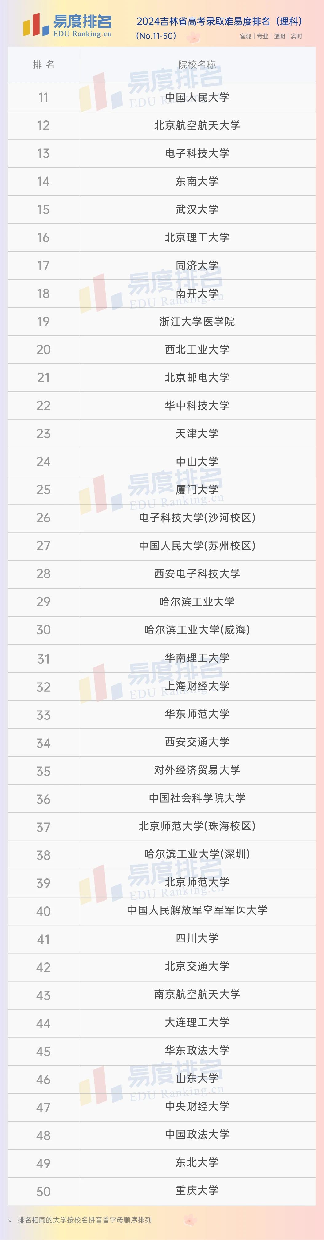 本期将公布“2024吉林省高考录取难易度排名”前100位。(具体排名方式见文末)