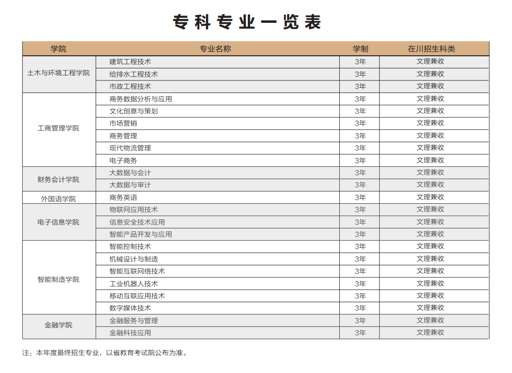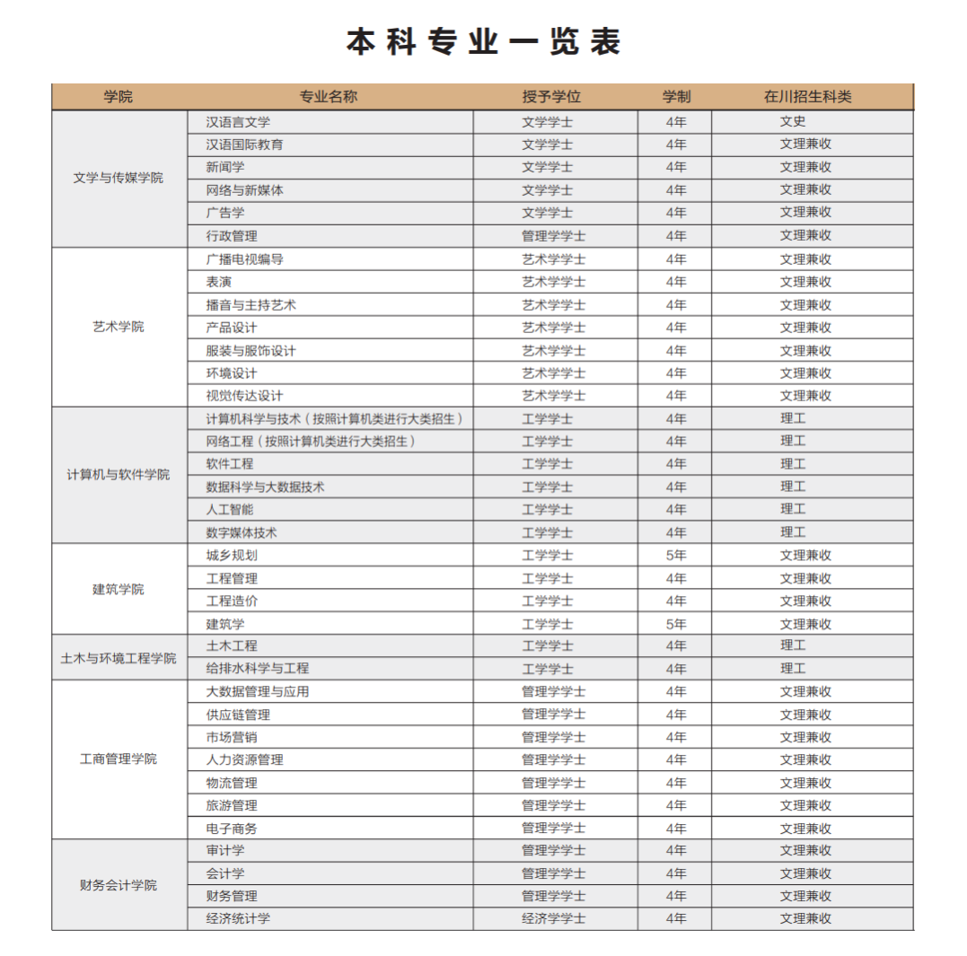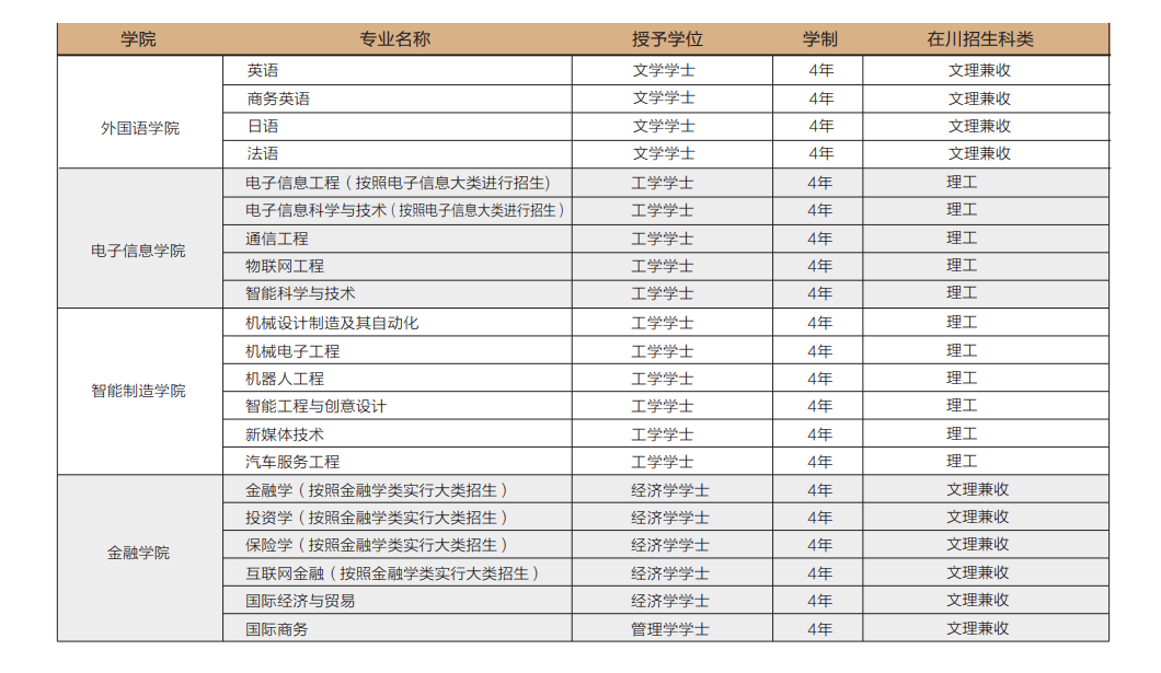 CHENGDUJINCHENG专业概览58个本科专业27个专科专业100余个专业方向形成了文、工、经、管、艺等