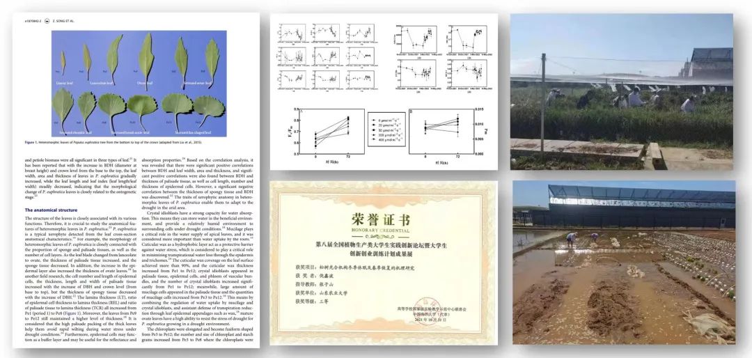 生命科学学院依托学校厚重的历史底蕴营造了纯朴的教学氛围,教学科研团队中的老师都非常亲切和“接地气儿”。对生命科学持久的好奇心,驱使倪鑫波大一上就加入张子山老师课题组,开展植物光合作用与逆境生理的科研训练。三年的时间里他独自承担“松树光合机构冬季休眠及春季恢复的机理研究”的科研项目,探究常绿植物光系统越冬的生理机制。水稻田、玉米地、小麦地都是他的常客,凌晨驱车前往试验田的睡眼惺忪和夜晚下地归来的疲惫是他默默的坚守。山农一代又一代科学家焚膏继晷和科研攻坚的精神,成为他在实验室深夜奋战的内驱动力。三年的实验室经历,无论是专业知识亦或是科研态度,他都从老师和师兄师姐那里学到了很多。