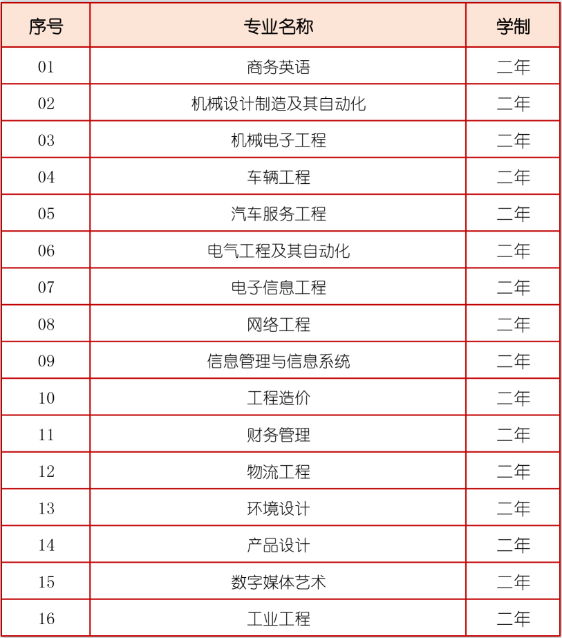 学校开设30个本科专业和15个专科专业。其中,省一流本科专业建设点2个(电气工程及其自动化、数字媒体技术);省民办高校本科优势特色专业5个(建筑环境与能源应用工程、电气工程及其自动化、机械设计制造及其自动化、数字媒体技术、电子信息工程);省级高职品牌专业群1个,省级高职特色专业3个。