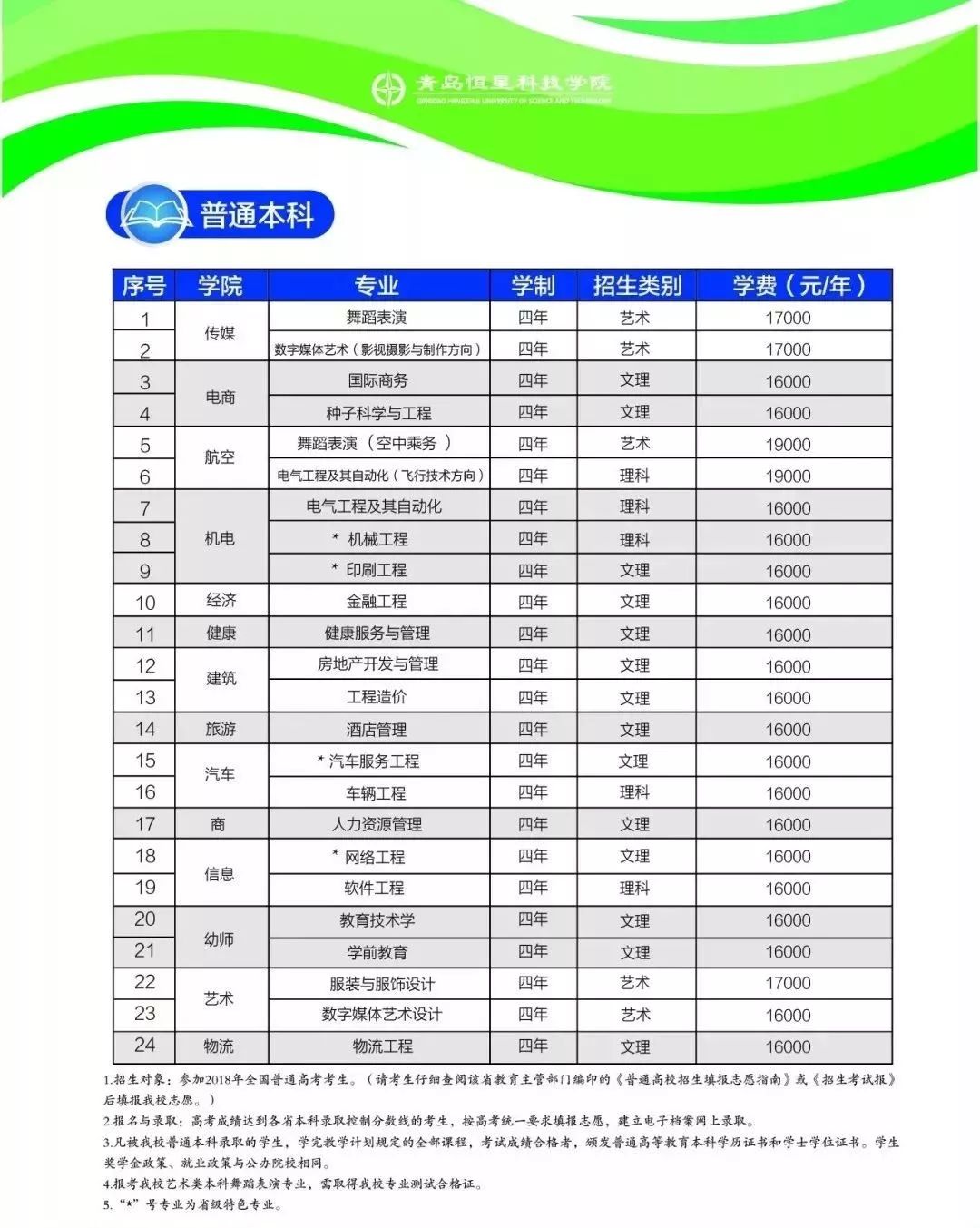 青岛恒星科技学院2018年招生简章