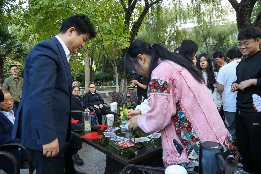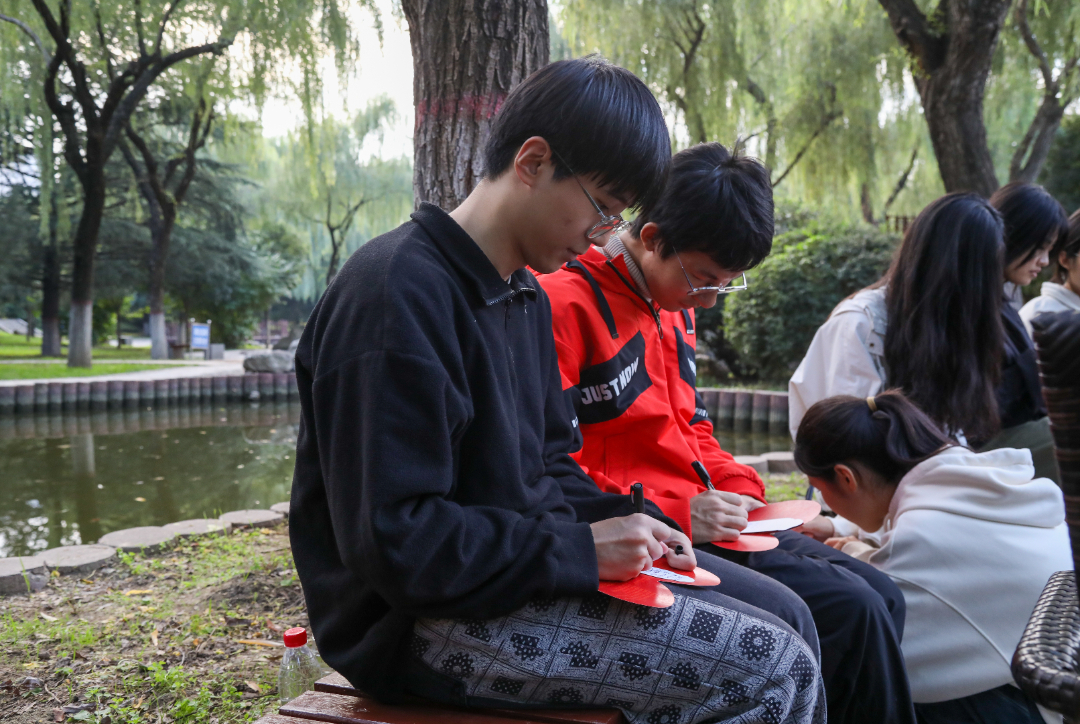 在风景如画的镜湖畔,王育选、任晖、刘明利三位校领导亲切地向同学们讲述自己的生涯之路。活动现场,同学们紧扣本季活动的内涵主题“谈理想”,围绕自我认知、专业探索、生涯规划和理想信念踊跃发言,表达了身为文理学子当有知校、爱校、融校的情怀,作为当代大学生应有扎根专业、笃学不倦、踔厉奋发的信念。