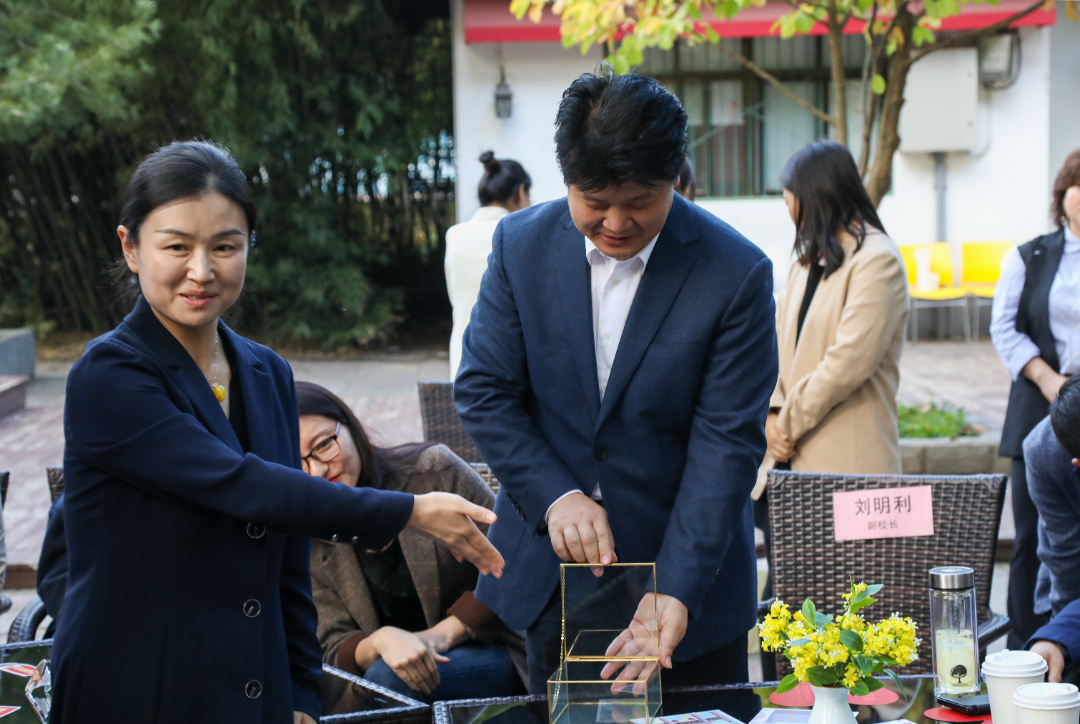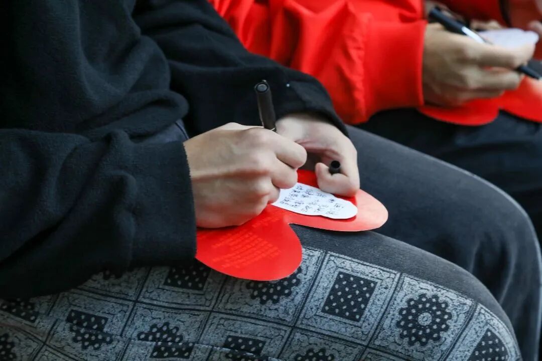 活动尾声,同学们将班级心愿及个人心愿写在“文理文气”原创文创书签上,刘明利打开“心愿盒子”现场收集同学们的“心愿”,任晖为“心愿盒子”贴上封签,两位校领导寄语大家心有所属、未来可期。