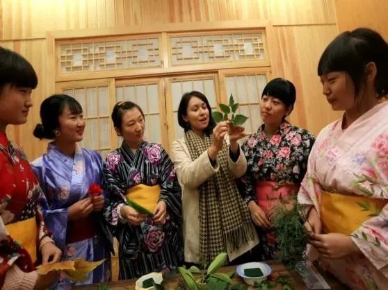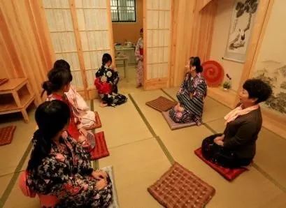 老师指导学生和服礼仪开放实验室采取全天候开放、