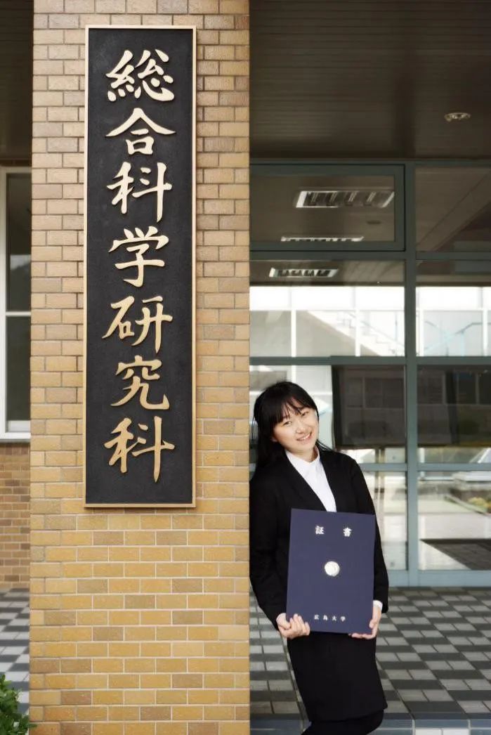 西安外事学院日语系本科毕业生,被日本广岛大学录为硕士研究生,综合科学研究科人文地理专业。广岛大学是日本四国、中国地区综合实力最强的大学。日本16所全学科大学院重点化大学之一,也是TOP20研究大学的重要成员。2019日本版THE世界大学排行榜中综合排名第12位。日本“超级国际化大学计划”A类顶尖校之一。