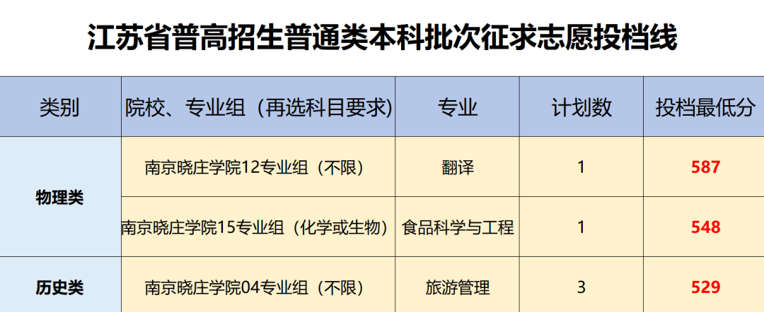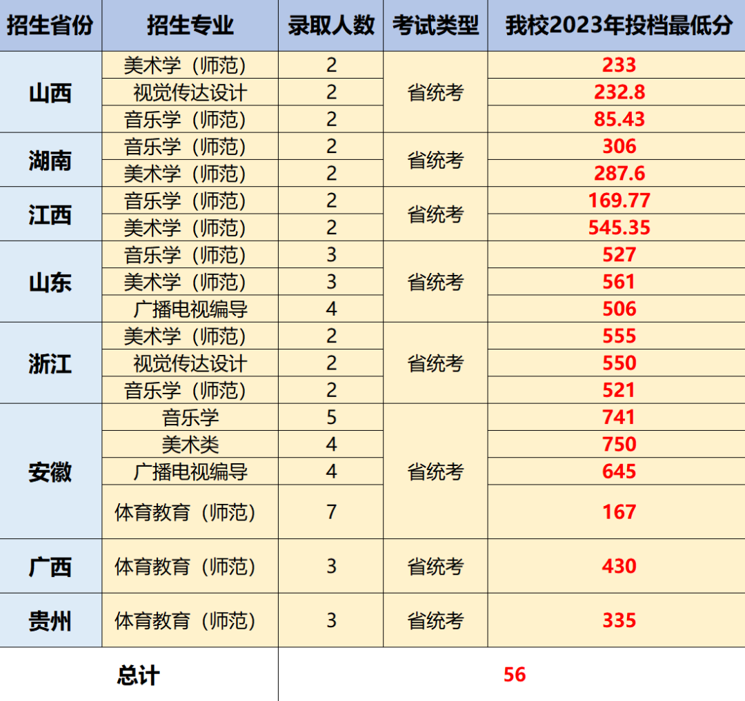 注: 1.在投档过程中,艺术类考生投档分相同时,依次按高考文化分、语文数学两科之和、语文或数学单科最高成绩、外语单科成绩、首选科目单科成绩、再选科目单科最高成绩由高到低排序投档;如仍相同,比较考生志愿顺序,顺序在前者优先投档,志愿顺序相同则全部投档。 2.投档分为专业分。 |