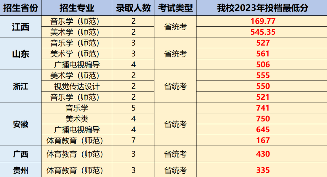 安徽、湖南、广东、山东、浙江普通类,江西艺术类的投档