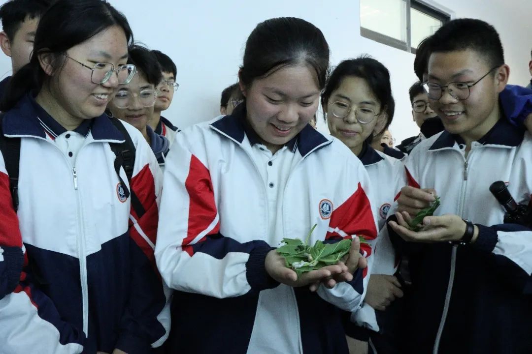 在校园里,礼嘉中学的师生在志愿者引导下从材料学院焊接机器人实验室到生技学院养蚕育种室、从图书馆到海韵湖、从文理大楼到西区食堂,校园里每一处风景都吸引着同学们不时停下脚步拍照留念。