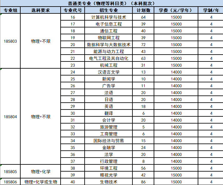 普通类专业(物理等科目类)