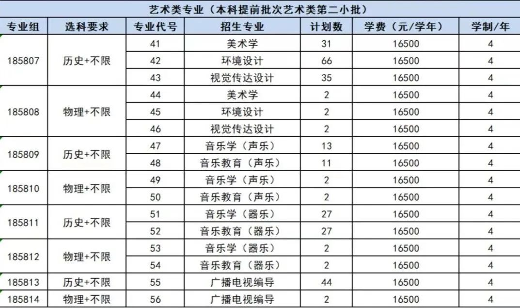 艺术类专业(本科提前批次艺术类第二小批)
