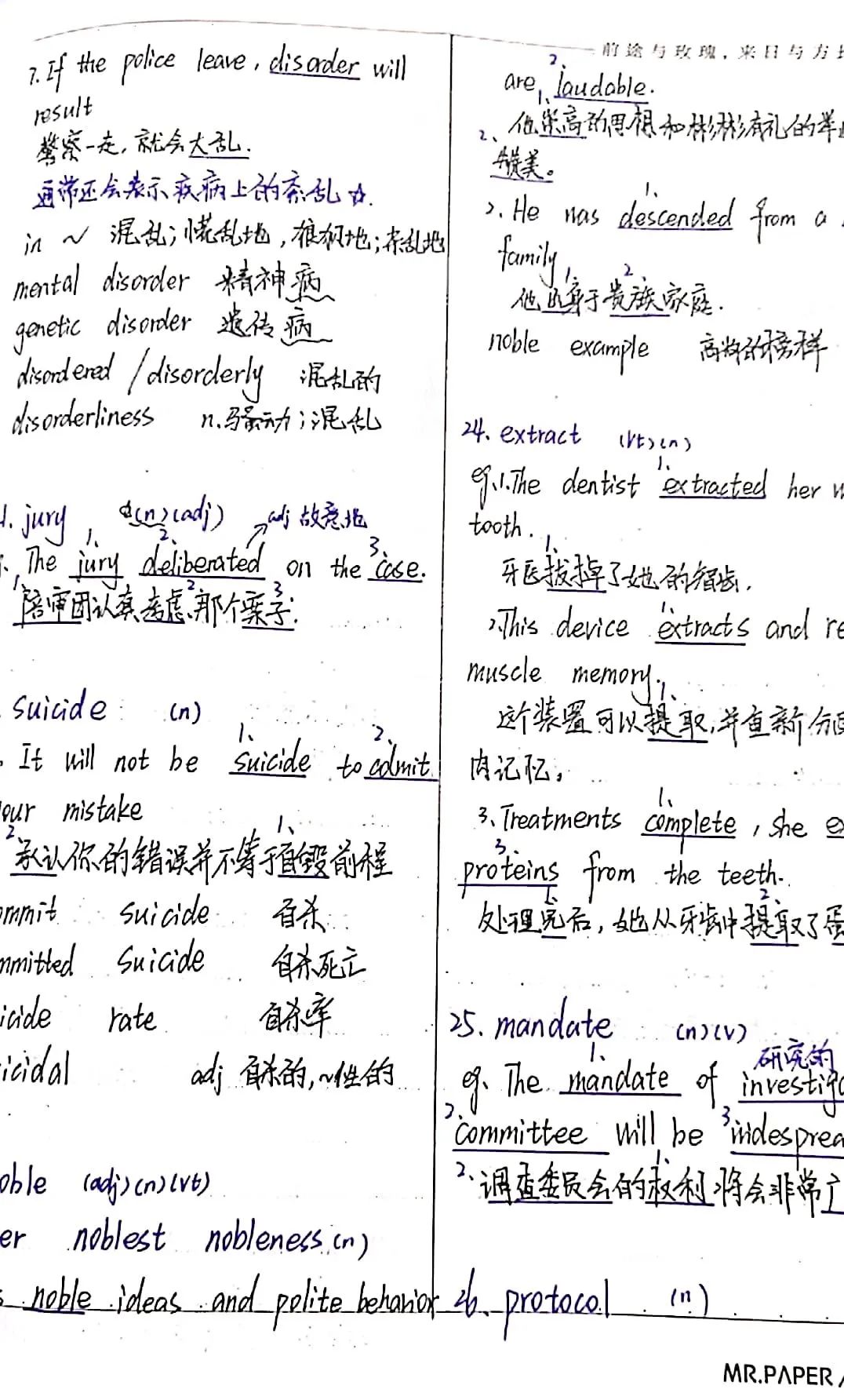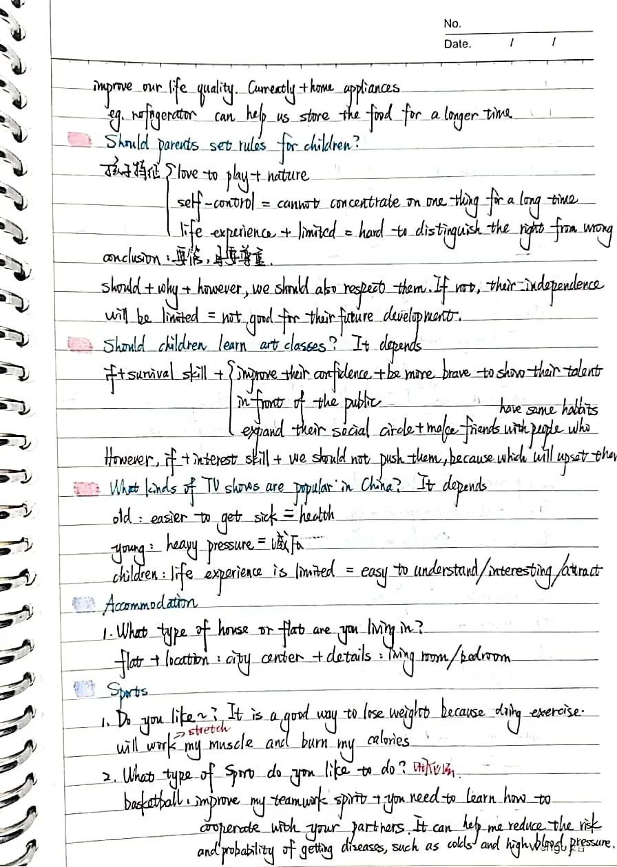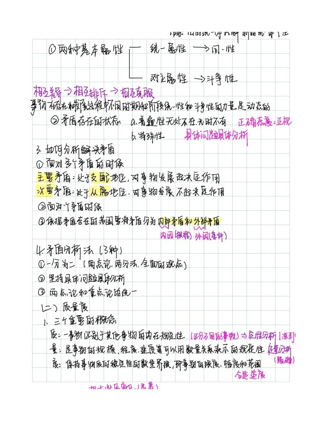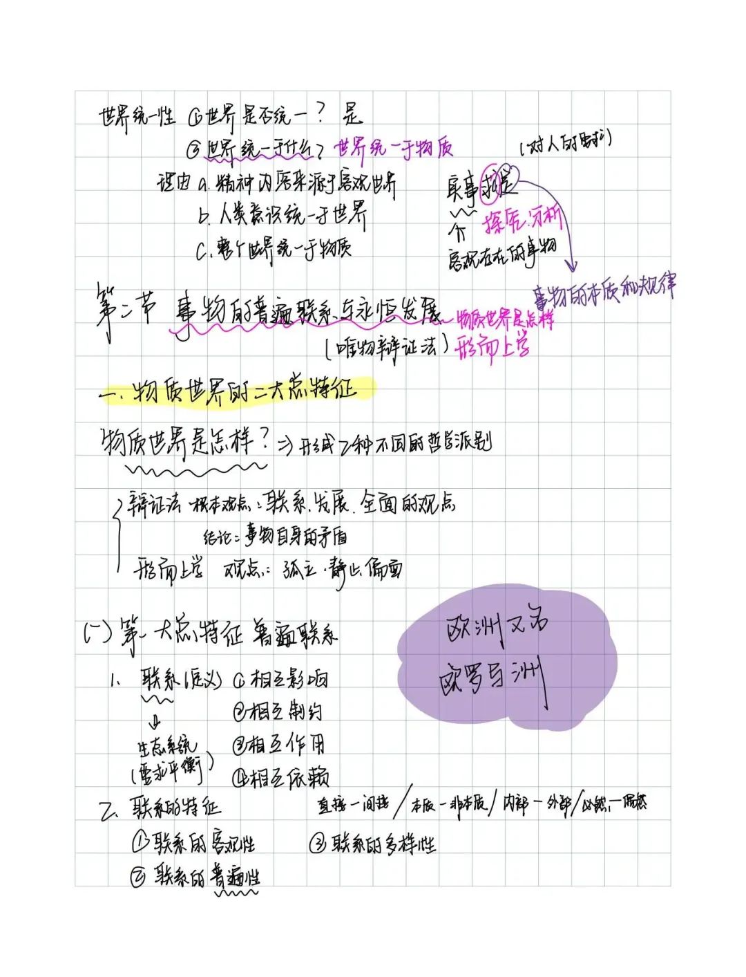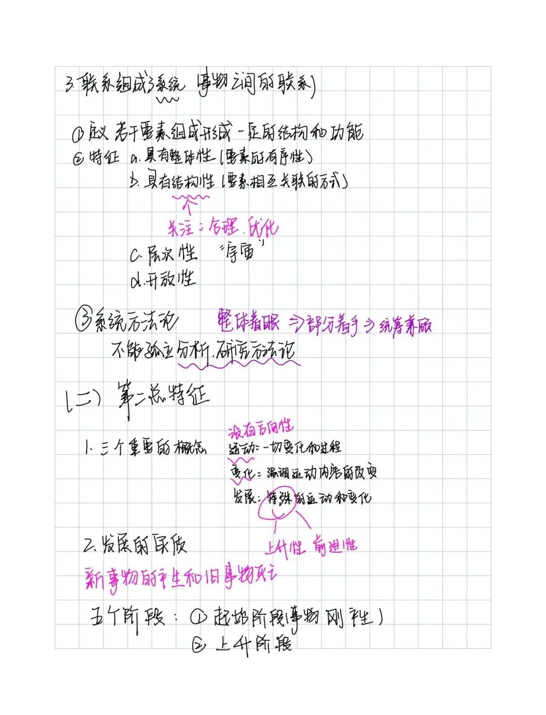 作为文科类学科,为了更好的复习和背诵,笔记制作更多关注的是条理性和整齐性。每一级的标题用不同颜色书写,将重点和次重点再次标注,复习时也一目了然。同时,笔记的梳理过程也能反映出我对知识的掌握程度,方便发现自己的缺漏。