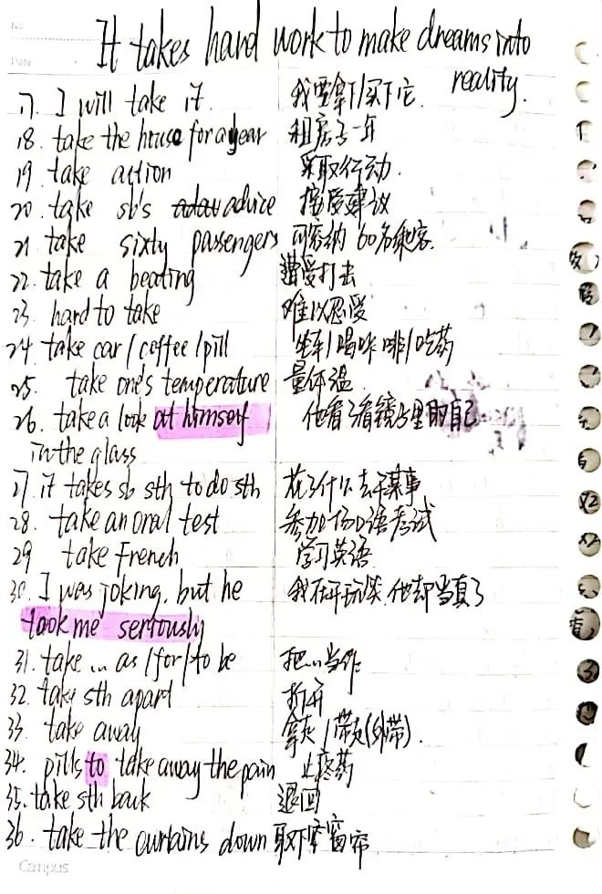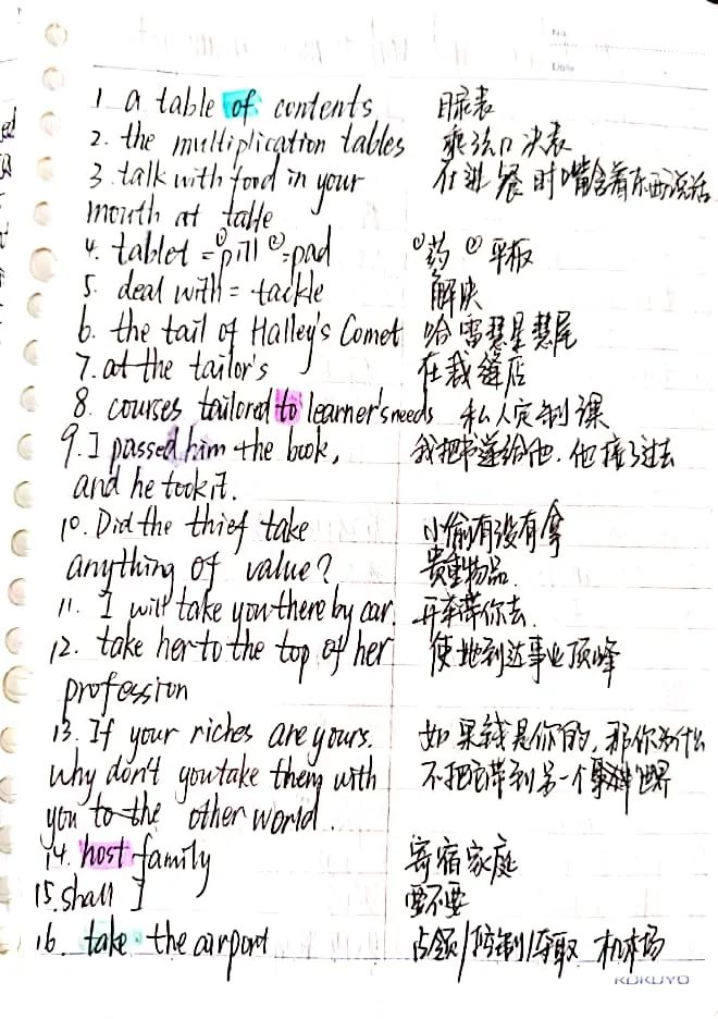 在学习生活中,一定要坚持做笔记,还要学会如何记笔记。首先记笔记不是单纯的抄书或者PPT,要精简,有自己的见解;其次,记笔记的体系和要点要清晰;然后笔记还要有易错点和细节:最后我觉得用不同的笔去记录重点也很重要。记笔记的目的是为了辅助我们更好的学习,也可以使我们复习的时候,更加有效。