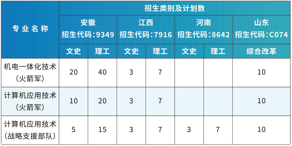 学校目前是国家骨干高职院校,现代学徒制、“1+X”证书制度试点单位,安徽省首批示范校、高职教育发展标杆校、校企合作典型示范校、技能型高水平大学立项建设单位、“三全育人”综合改革试点高校,安徽省唯一一所火箭军、战略支援部队地理位置