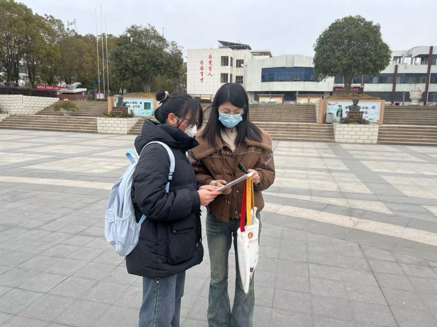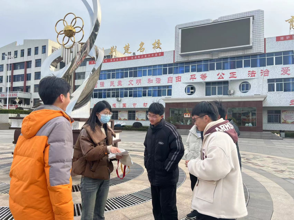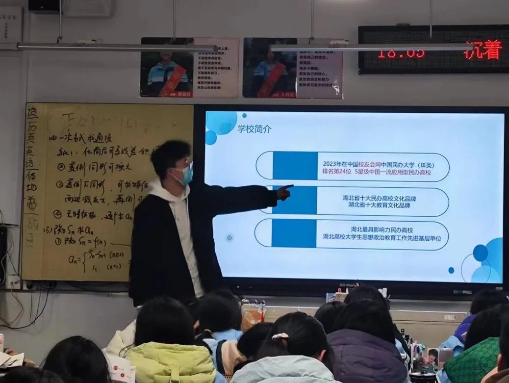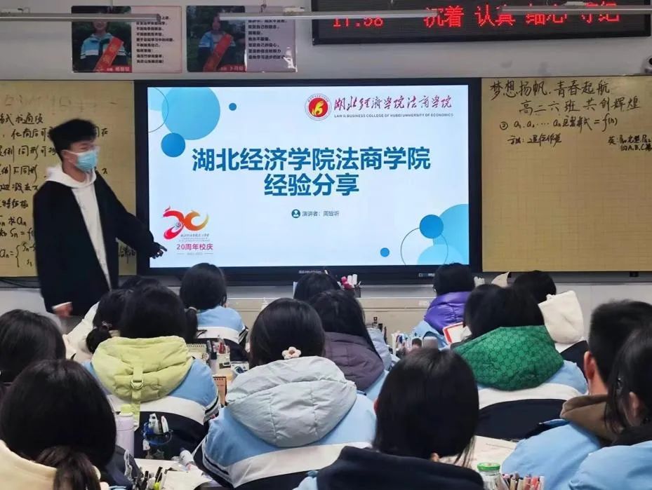 正式回访那天,襄阳正在爆发流感,为了不影响学弟学妹的健康与复习,最后只有周皆圻一人入校宣讲,剩下的成员在校门口向一些家长宣传法商之美。宣讲活动得到了极大的反馈,不少学弟学妹添加了联系方式,班主任也收藏了