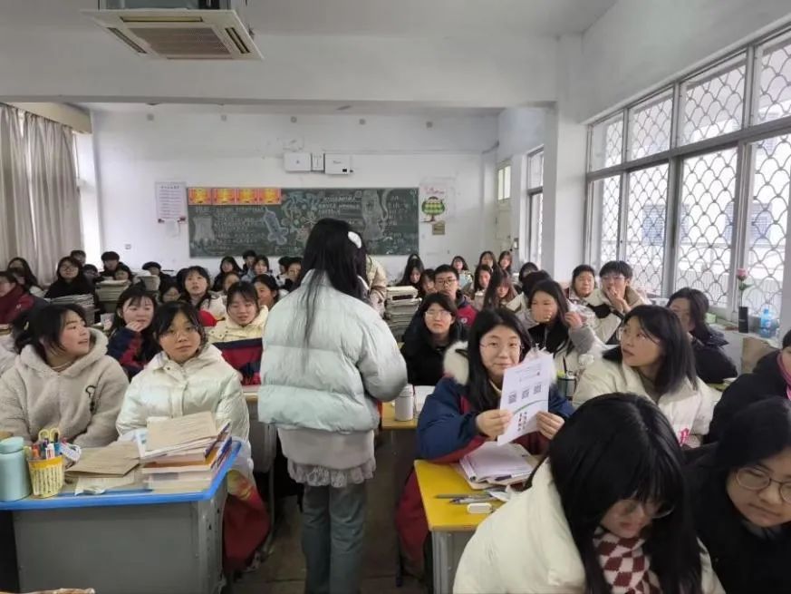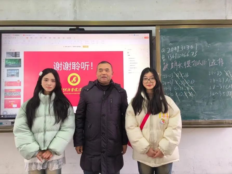 由于当时高三同学正在进行省级期末考前的紧张复习,考虑到同学们的时间和心理等等多方面的因素,我们利用两个大课间和午间自修的时间分3组向15位同学介绍了法商学院的情况。各位同学都很积极,询问了很多高考报志愿的情况。我们都一一为他们解答,并讲述自己在高考考场上得到的一些经验,告诉他们一定要从现在开始就调整好心态,改进方法,只要坚持不懈,胜利终会来临。