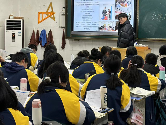 刘佑铭与同伴教室宣讲时同学们认真听讲的情形