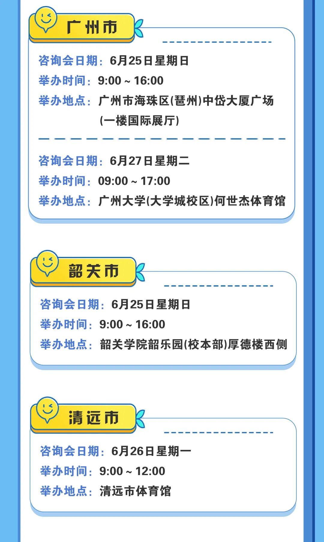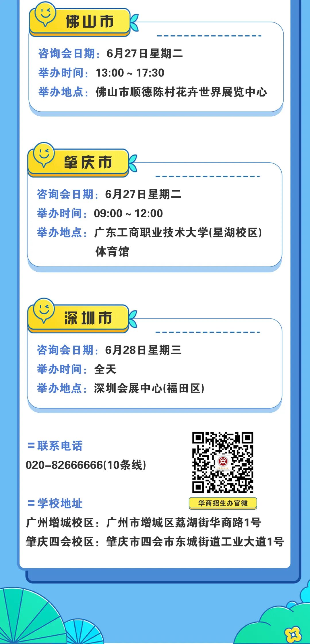 学校招生办工作人员、各二级学院老师将组成招生宣传队伍,分赴茂名、东莞、汕头、潮州、中山、河源、广州、韶关、清远、佛山、肇庆、深圳等地市参加高考招生咨询会,届时我校老师将对考生和家长关心的问题面对面解答。