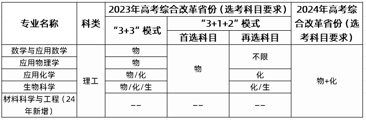 中南大学的强基计划主要涵盖数学与应用数学、应用物理学、应用化学、生物科学等基础学科,今年学校在此基础上新增了材料科学与工程专业,并在综改省份统一了选考科目要求,物理和化学则是必选科目。