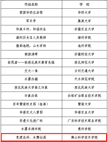 入选优秀作品名单