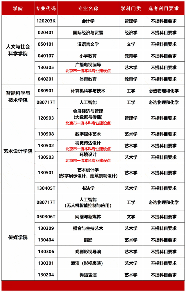 北京本科招生专业以及选考科目要求