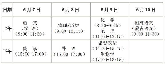 15.我省统一高考于6月7日开始举行,具体科目考试时间安排如下: