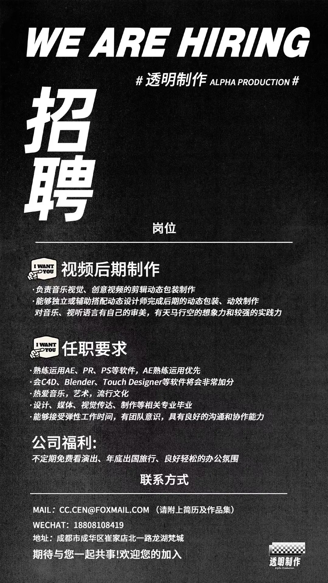 MG动画师:熟练掌握AE\AI\PS\C4D等相关设计软件,能独立完成各种动效制作,有一定剪辑技能;