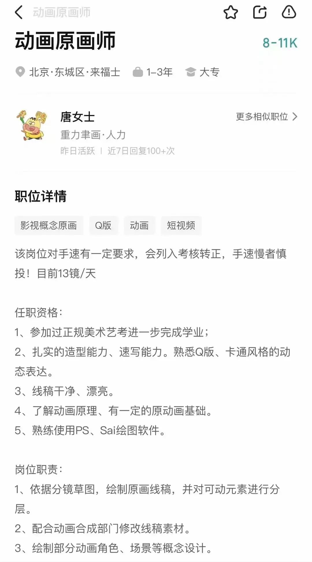 动态漫画岗位:漫画制作绘制,人物动态剪辑。