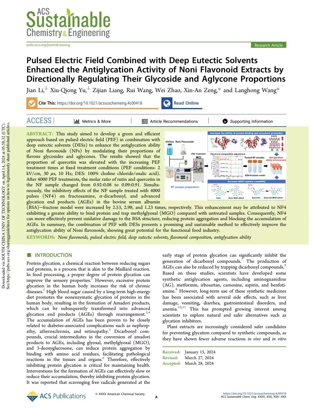 近日,广东省食品智能制造重点实验室李坚博士为第一作者、汪浪红副教授和曾新安教授为共同通讯作者,以佛山科学技术学院为第一署名单位在绿色