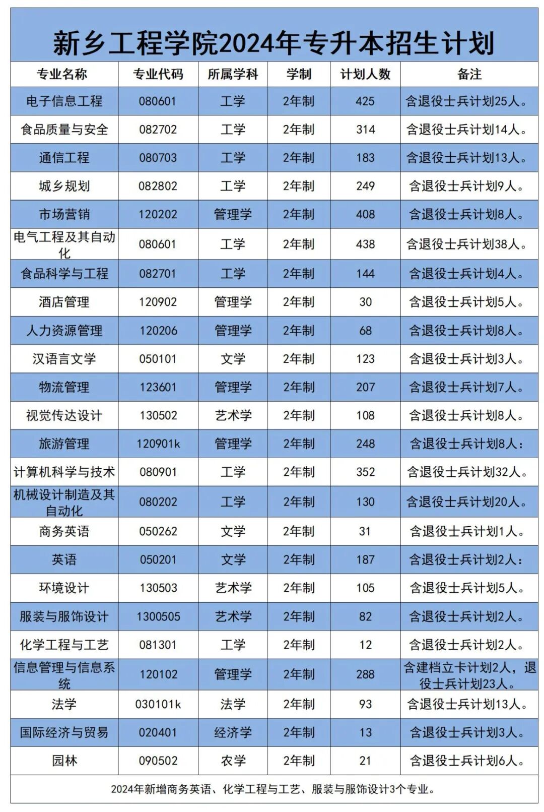 2. 河南省2024年普通高校退役大学生士兵免试专升本招生计划