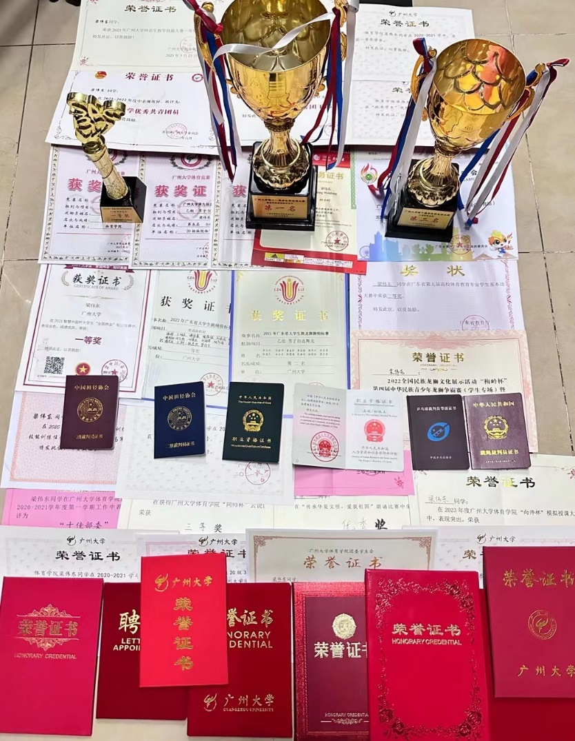 梁伟东还参与许多志愿活动,广马志愿者、疫情时期的防控突击队员、三年的迎新志愿者等许多志愿活动都有他的身影,大学期间的志愿时长总计达216小时,是一位乐于助人、无私奉献的广大er。参与志愿活动的他全身心投入到其中,能够感受到帮助到他人所带来的愉悦。