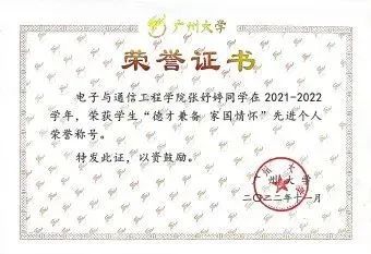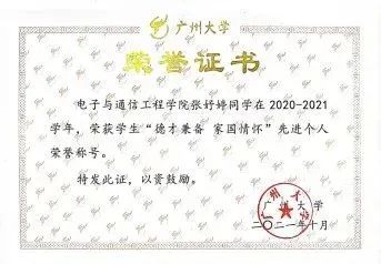实践方面,曾代表广州大学参访东南大学,积极参与“三下乡”志愿者等活动,志愿时长超270小时。现以学院第一的成绩推免至浙江大学攻读硕士研究生。