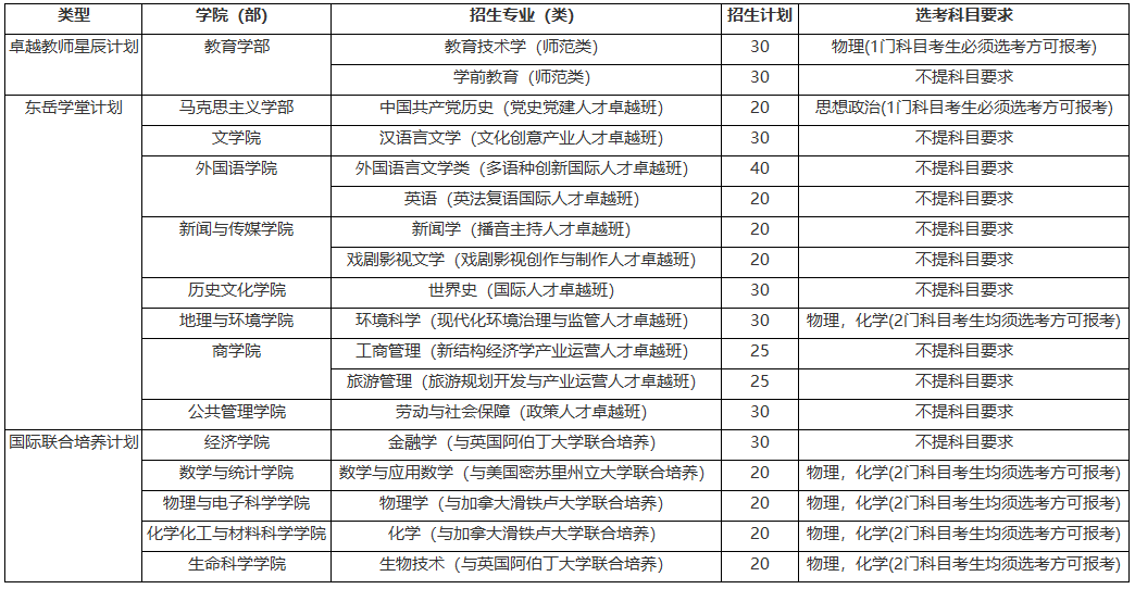 学校综合评价招生注重多元化评价,为选拔出具有发展潜力和创新精神的优秀学子,对部分专业做出相应要求:学前教育专业针对2022—2025学年部分全国性竞赛的省级三等奖及以上获得者开放。新闻学和旅游管理专业则要求考生参加山东省2024年相关专业的统一考试,并达到本科合格线。其他综合评价招生专业,一类条件同样看重全国性竞赛的获奖经历,二类条件则侧重于学科竞赛、科技创新、语言文学等领域的特长及获奖情况。此外,考生还可通过提供如省优秀学生干部、省三好学生等写实性材料来展示自己的特长和潜质。