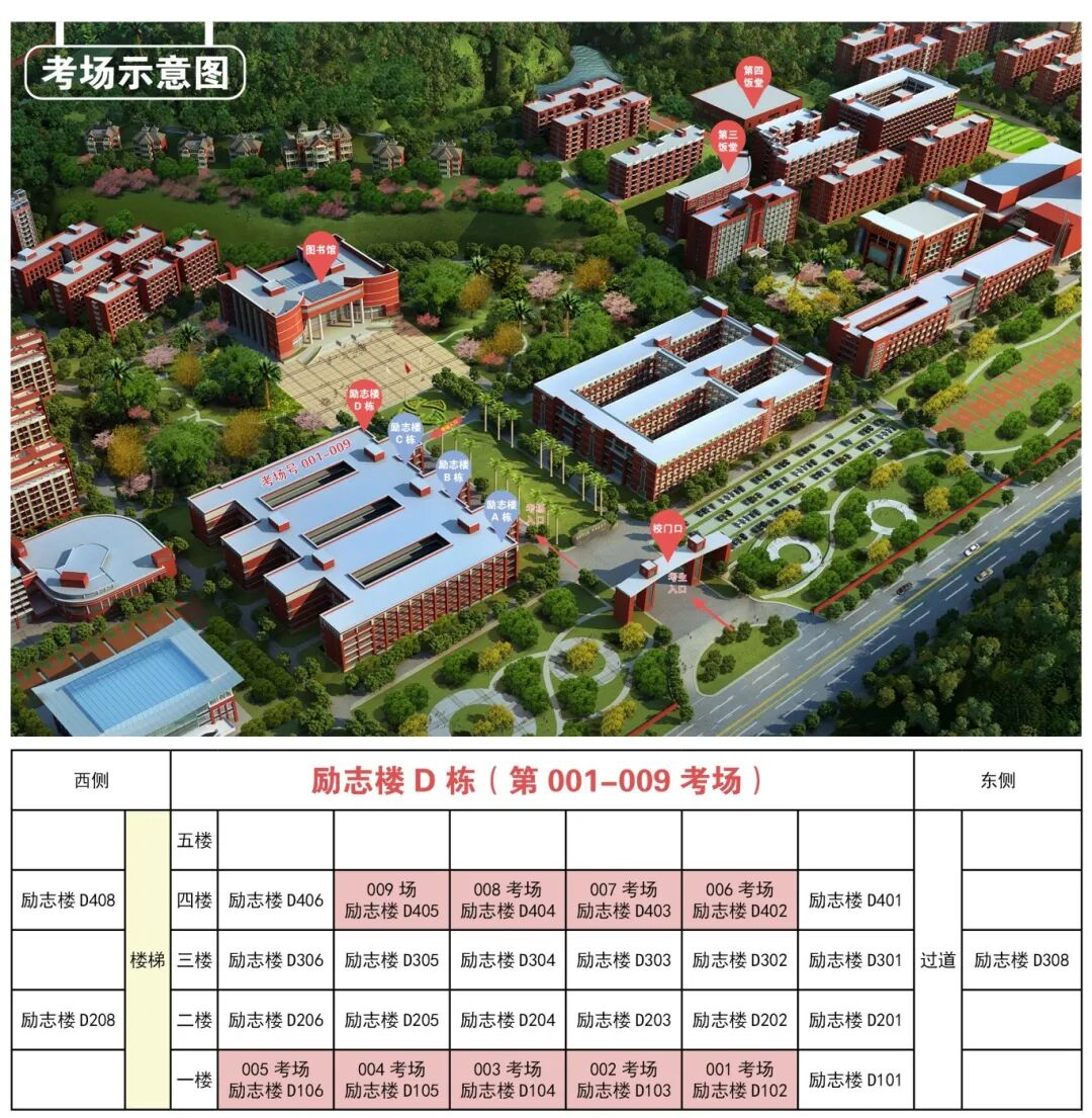 考试当天,在考场入口处设置了“考生双证检测”点,请各位考生在规定时间内前往励志楼东3门入口处排队进行身份核验,考生核验通过后听从现场工作人员指挥有序到达相应考试楼层。