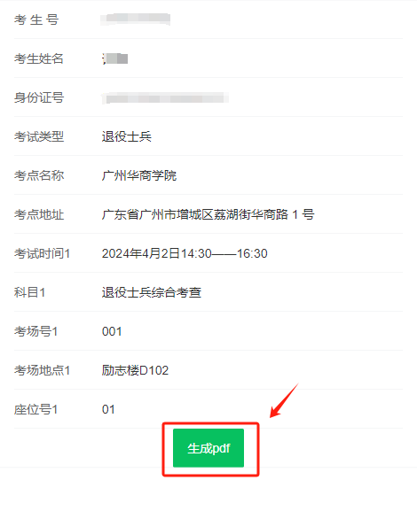 第三步,核对个人信息,无误后点击“生成pdf”即可下载自行打印
