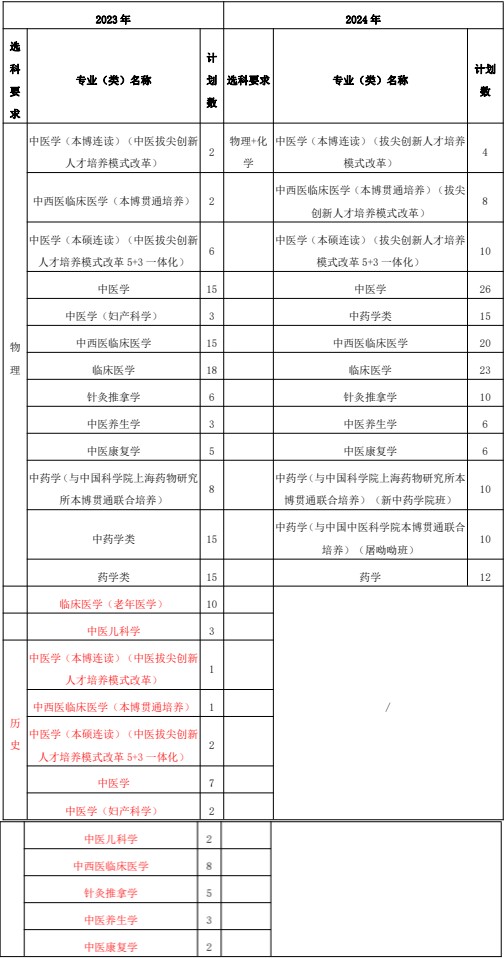 2024年,南京中医药大学在招生专业上,数量骤减。今年仅设有选考物理+化学的考生可报考的专业,对考生和家长来说,这是一个需要重点关注的变化。去年的历史大类招生专业以及物理类中的临床医学(老年医学)、中医儿科学专业都不再出现在今年的招生名单中。对于历史大类的考生来说,今年没有可报考的专业。对于原本考虑报考临床医学(老年医学)和中医儿科学专业的考生来说,由于这两个专业今年不再招生,可能需要重新考虑自己的专业选择。可以考虑其他医学类或相关专业,如临床医学、中医养生学、中医康复学等,或者根据自己的兴趣选择其他专业。