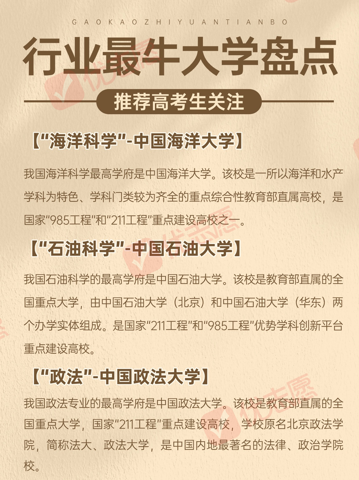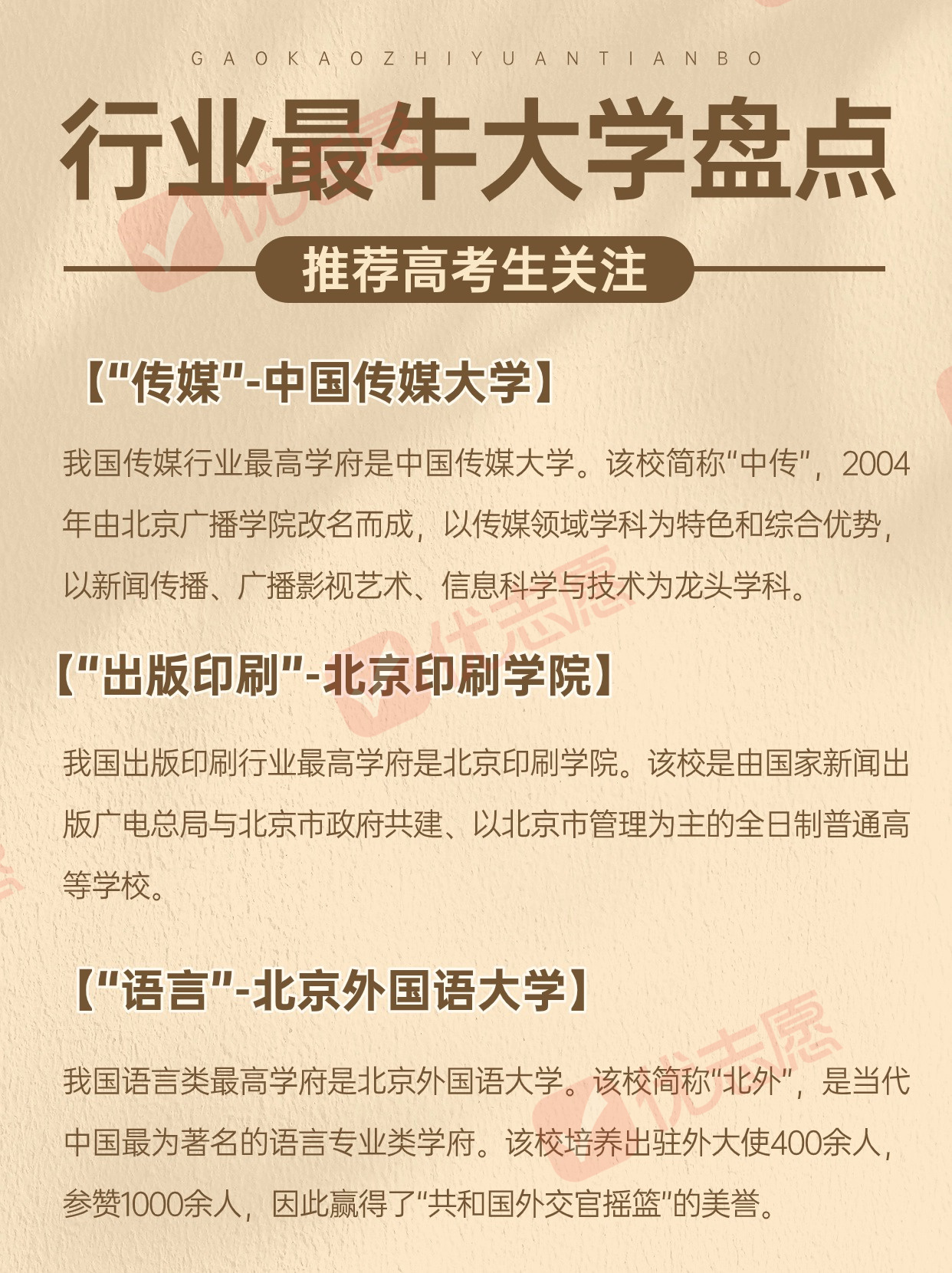填志愿就看优志愿!今天分享各个行业的最高学府,看看你的心仪院校上榜了没?