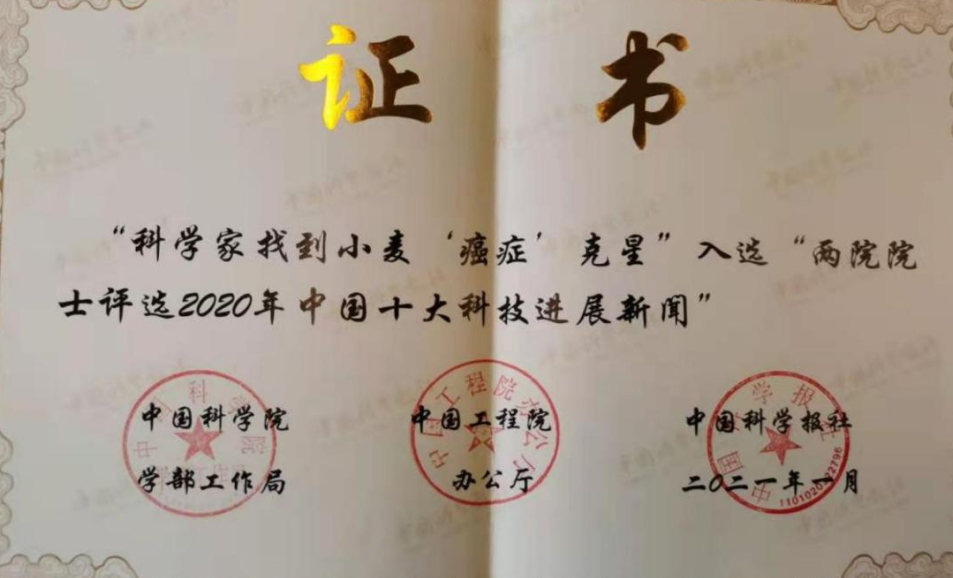研究成果入选由两院院士评选的“2020年中国十大科技进展新闻”