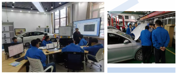 主干课程:新能源汽车电工电子技术、新能源汽车技术、汽车电器与辅助电子系统技术与维修、混合动力汽车、驱动电机及控制技术、动力电池管理及维护技术、新能源汽车底盘构造与维修、新能源汽车综合性能检测、新能源汽车综合故障诊断等。