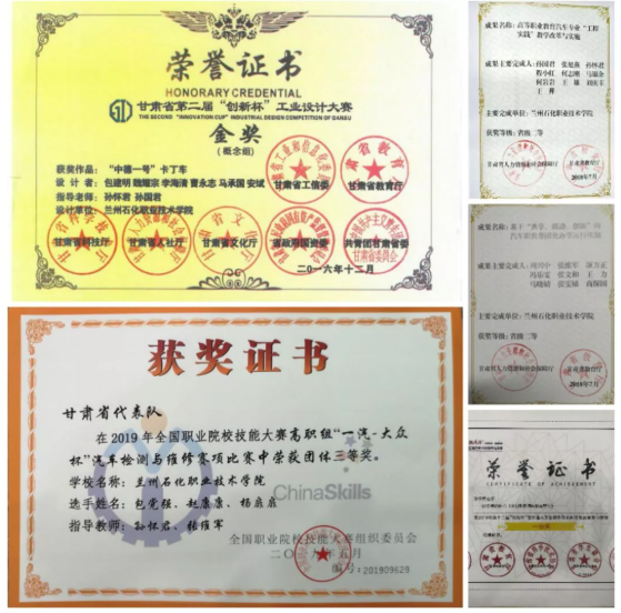 学院积极参加各类技能大赛,以赛促改、以赛促建,以赛促教,取得丰硕成果。先后在中国技能大赛—“三区三州“技能大赛、新能源汽车关键技术技能大赛、第44届世界技能大赛甘肃选拔赛、中国巴哈大赛、中国互联网+创新创业大赛、全国职业院校技能大赛、全国教师教学能力大赛、“挑战杯“科技竞赛、甘肃省技能大赛、甘肃省工业设计大赛、新能源汽车技能大赛等多个赛项取得了优异的成绩,荣获国家级奖励35项,省级奖励42项。