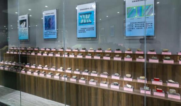 工程地质实训中心包括岩矿鉴定实训室、地质陈列馆、宝玉石加工实训室。其中地质陈列馆是具特色的实训室。地质陈列馆占地面积近1000平方米,内设“序厅”“地球演化厅”“三大岩类展示厅”“矿产资源厅”“奇石玉石厅”五个展厅。各类标本、原石、藏品等通过现代化的展陈手段展现出来,并通过光、电、声等现代多媒体手段,形象展示地球演变、地质构造、地质灾害等地质现象,是集教学、科普展览、技能认证、技能大赛、社会