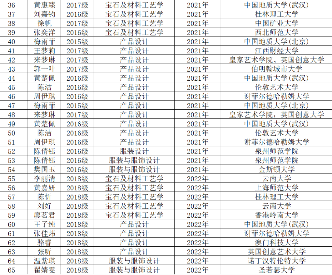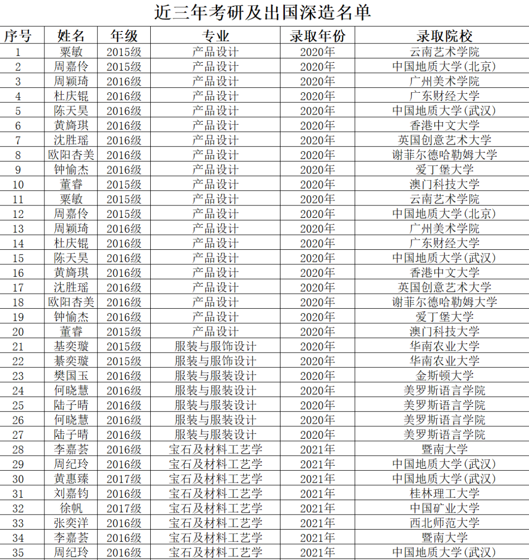 近三年(2019年-2021年)珠宝学院学生研究生录取高校包括: