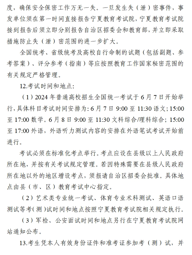 文章来源:宁夏教育考试院 宁夏回族自治区2024年普通高等学校招生规定