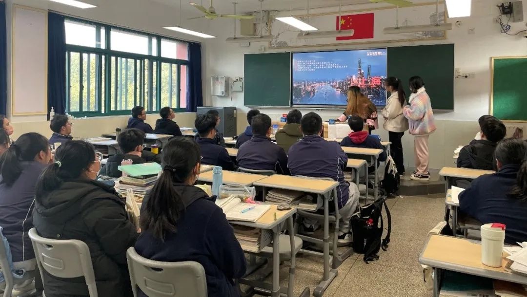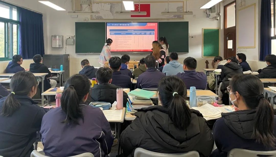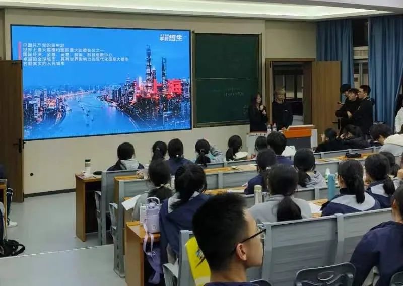 2月22日,来自统计与信息学院的2023级本科生黄语嫣和来自国际经贸学院的2023级本科生杨烨回到了高中母校——上海市行知中学开展招生宣讲。他们的前期工作是联系高中母校,通过联系高中老师确定了宣讲时间与地点。之后团队制作了电子海报,加大宣传力度,并不断加工ppt,润色演讲稿,以此更好地完成宣讲工作。宣讲会当天,通过结合ppt内容以及个人经历感受,为学弟学妹们展现了上经贸大的风采,同时也解决了很多他们当下的困惑。在宣讲会最后同学们积极提问,表现出了对上经贸大的兴趣和向往。招生宣讲会的圆满完成,不仅让学弟学妹们更好地了解上经贸大,也让他们在高三这个关键阶段更明确了自己的目标。