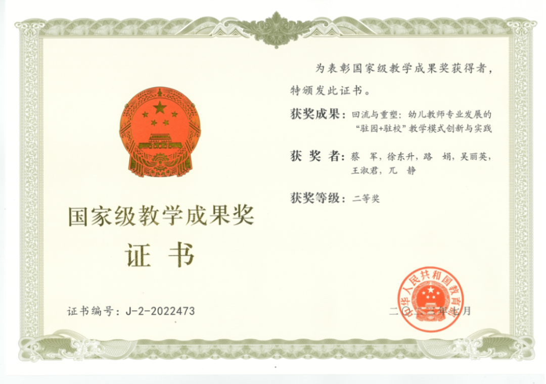 我校学前教育学院蔡军教授团队成果:“回流与重塑:幼儿教师专业发展的‘驻园+驻校’教学模式创新与实践”,荣获2023基础教育国家级教学成果二等奖,实现学校零的突破。日前,我们对成果主要完成人进行了采访。