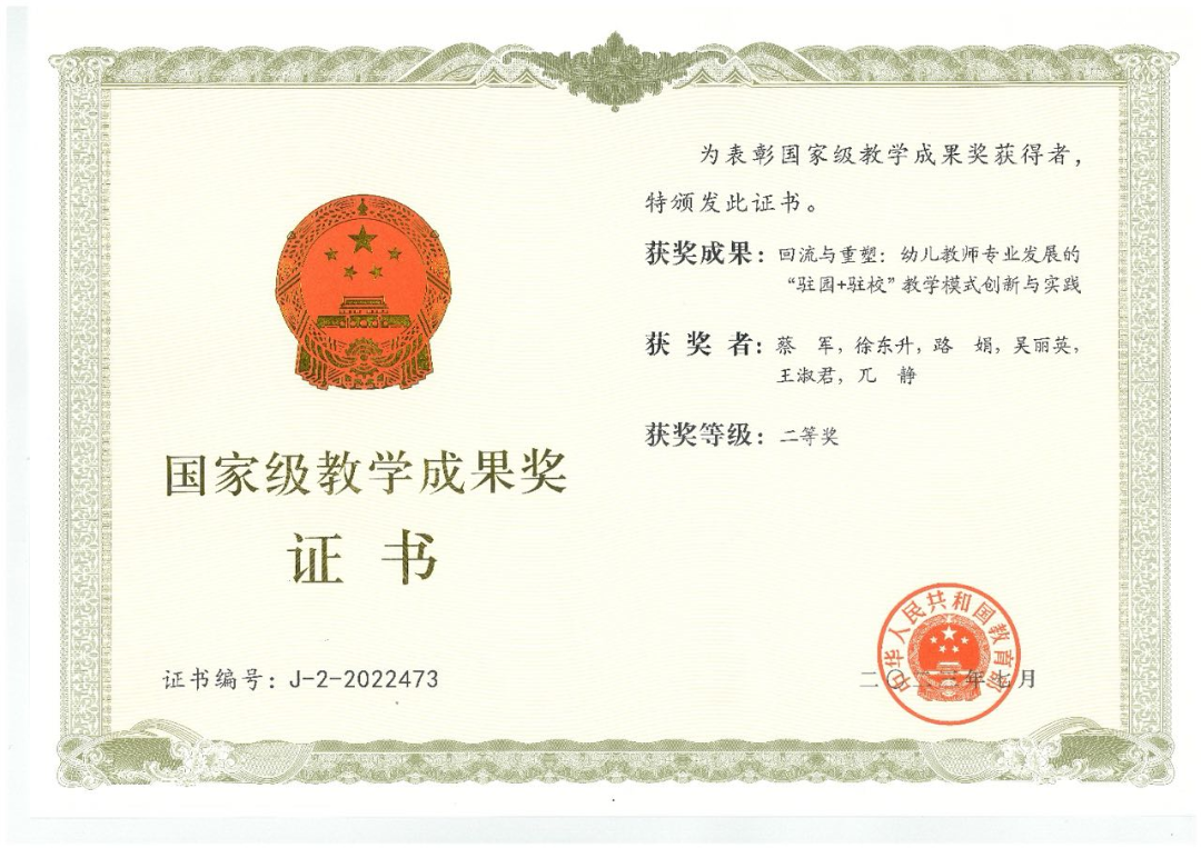 多年的办学积累,形成了学前教育专业全程实践、理实结合、协同育人的“驻园式”人才培养模式,获得一系列高层次成果。近三年,学院获国家级教育教学成果奖二等奖1项,省级教学成果奖6项,入选国家规划教材2部、省级规划教材2部,获省高校优秀教材奖2项,省教改重点项目6项,省虚拟仿真实验项目1项,省一流本科课程、课程思政示范课程等7门,省级优秀案例1项。学生25人次获华文全国学前教育师范生教育教学技能测试一、二等奖,两次综合成绩位居参赛高校第二名,7人次获陕西省师范教育教学能力大赛特等奖、一等奖。中国教育报以《在幼儿园里“办大学”》为题,在头版头条对本专业人才培养进行了报道。