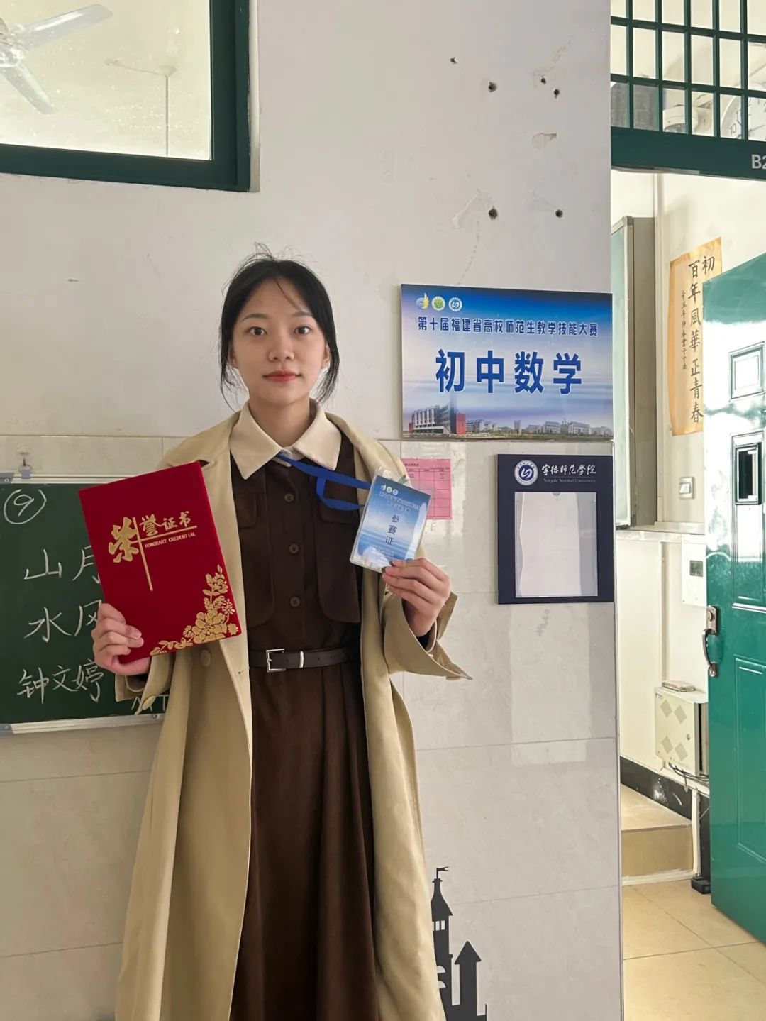梦想启航,万象更新小魔莉:学姐如今荣誉满身,同时顺利就业,你又是如何规划这四年的?杨军:我在大一和大二学年预设的目标是想要继续读研深造,因此会更加注重专业课知识的学习以及学业成绩的排名。在大三学年,我向学长学姐了解就业情况,并知道了我们学校综合测评在前30%的优秀师范毕业生可以免笔试直接面试进入教师队伍。于是我立刻开始注重师范生技能的培养和训练。在大四期间,我进一步了解了我户籍所在地漳州教招的面试内容及要求,并认真钻研相关教材,反复进行片段教学训练,不断提升自己的教学技能,最后光荣地成为人民教师队伍中的一员。小魔莉:学姐是否曾纠结过,是要继续读研深造还是直接成为一名教师呢?当时又是为何决心放弃推免资格?杨军:在大三学年,我的目标从继续读研深造转变为成为人民教师。这主要是因为我入选了我们学校特色的多学科交叉卓越教师联培机制——未来卓越教师班。在这一学年里,我经常去福州第三中学听课、评课,学习优秀教师的教学思路、方法,同时我们的校内指导老师董涛老师非常认真负责,经常安排我们数学专业的五个成员录制片段教学视频,并进行学生互评、教师点评。在这一过程中,我的教学技能得到了显著提升,这更加坚定了我成为一名教师的决心。最终我在家人的支持和老师的鼓励下,我下定决心在本科毕业后回到漳州从事教育工作。小魔莉:马上要成为一名老师了,你对自己未来的教学生涯有什么展望吗?杨军:在今后的教育工作中,我希望自己能够认真踏实地做好本职工作,多学习前辈教师的先进经验,并对自己的教学及时总结反思,逐渐形成属于自己的教学风格。同时,我还会积极参加教师技能比赛,不断提升自己的教学能力和专业水平,努力成为一名出色的人民教师。