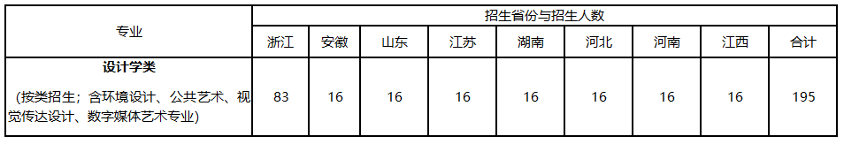 2024年设计学类招生计划195名;艺术类分文理科的省份仅面向艺术类文科考生招生,不分文理科的省份不作文理科报考要求,分省计划如下: