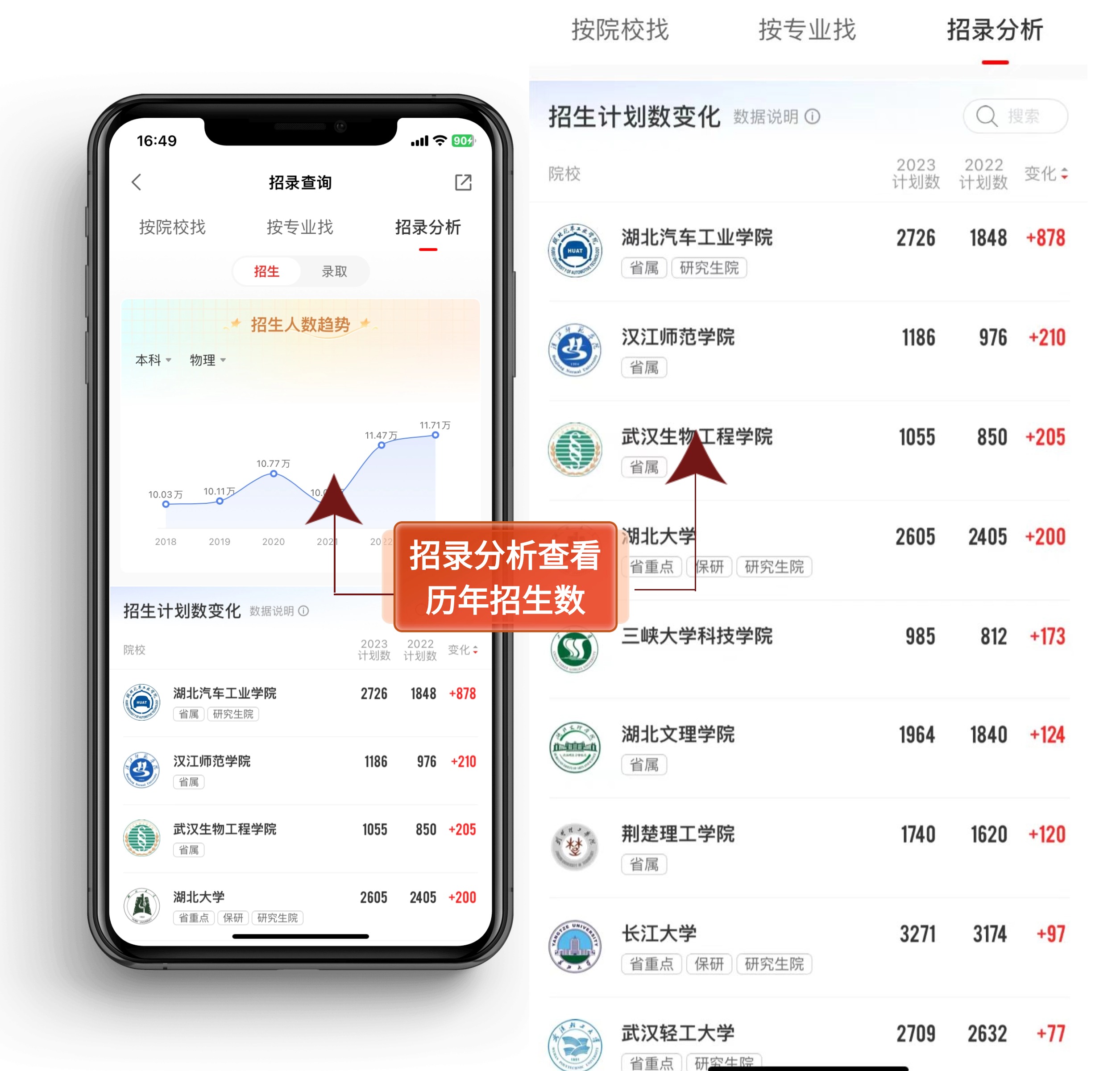 在进行招录分析查计划时,可以清晰洞察历年招生人数趋势,并依据不同的专业组别进行细致划分。分析中不仅涵盖了各院校的招生人数,还深入剖析了招生专业的具体变化详情,为考生和家长提供了全面且深入的招生录取分析,有助于他们做出更明智的报考决策。