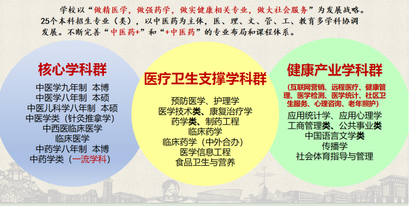 天津中医药大学创建于1958年,是天津市人民政府、教育部、国家中医药管理局共建高校,国家最早建立的中医药高等院校之一;是天津市人民政府、教育部、国家中医药管理局共建高校;是国家“双一流”建设高校。学校入选教育部中药学基础学科拔尖学生培养计划2.0基地、中药学本科教育教学改革“101计划”牵头单位,获批教育部工信部中药制药现代产业学院;