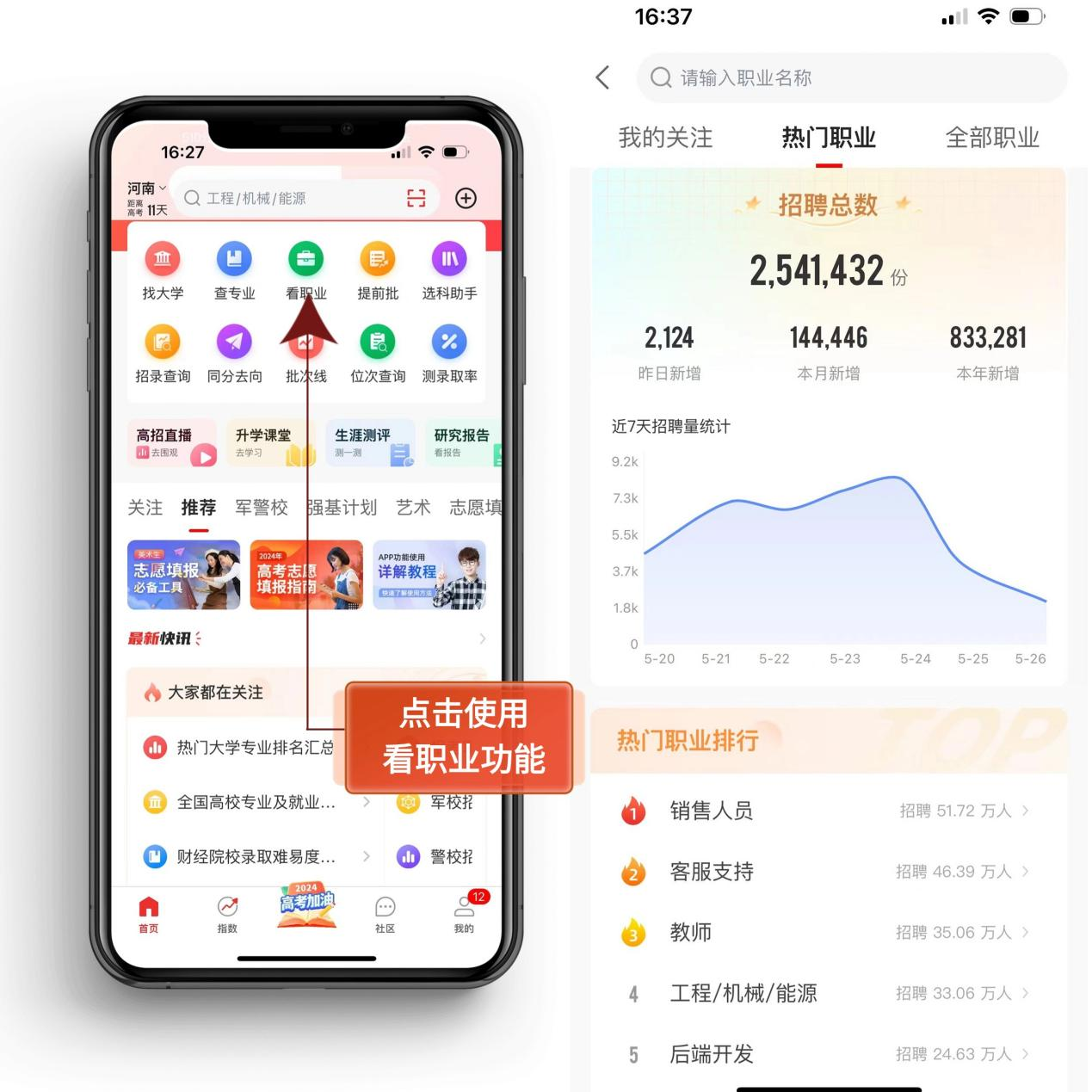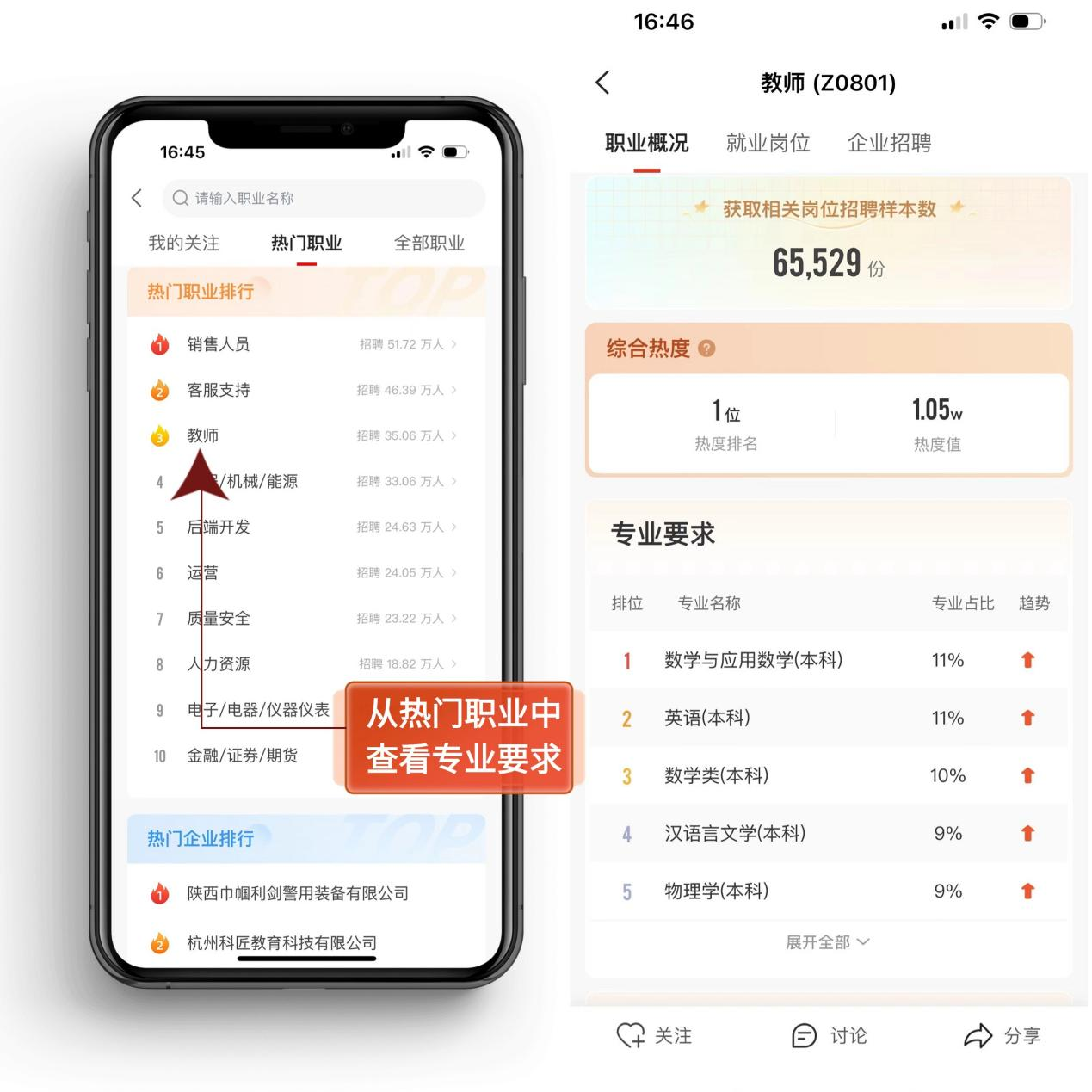 此外,“看职业”功能中的其他信息,如学历要求、人才需求、招聘企业类型等,都为考生的职业规划和专业选择提供了全面、有力的支持。